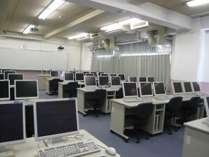 普通教室から、ネットワークにつながった40台のノートパソコンを設置できる教室に変更することができます。スクリーン・スピーカーも設置してあり、視聴覚教材の視聴等に使用します。講習などでも使用されています。